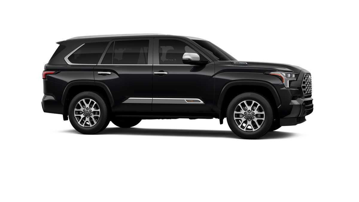 - Bright-chrome "SEQUOIA" rear door badge, chrome "1794 EDITION" door badge and garnish, door handles, window molding and mirror caps; color-keyed tailgate spoiler; black-painted overfenders
