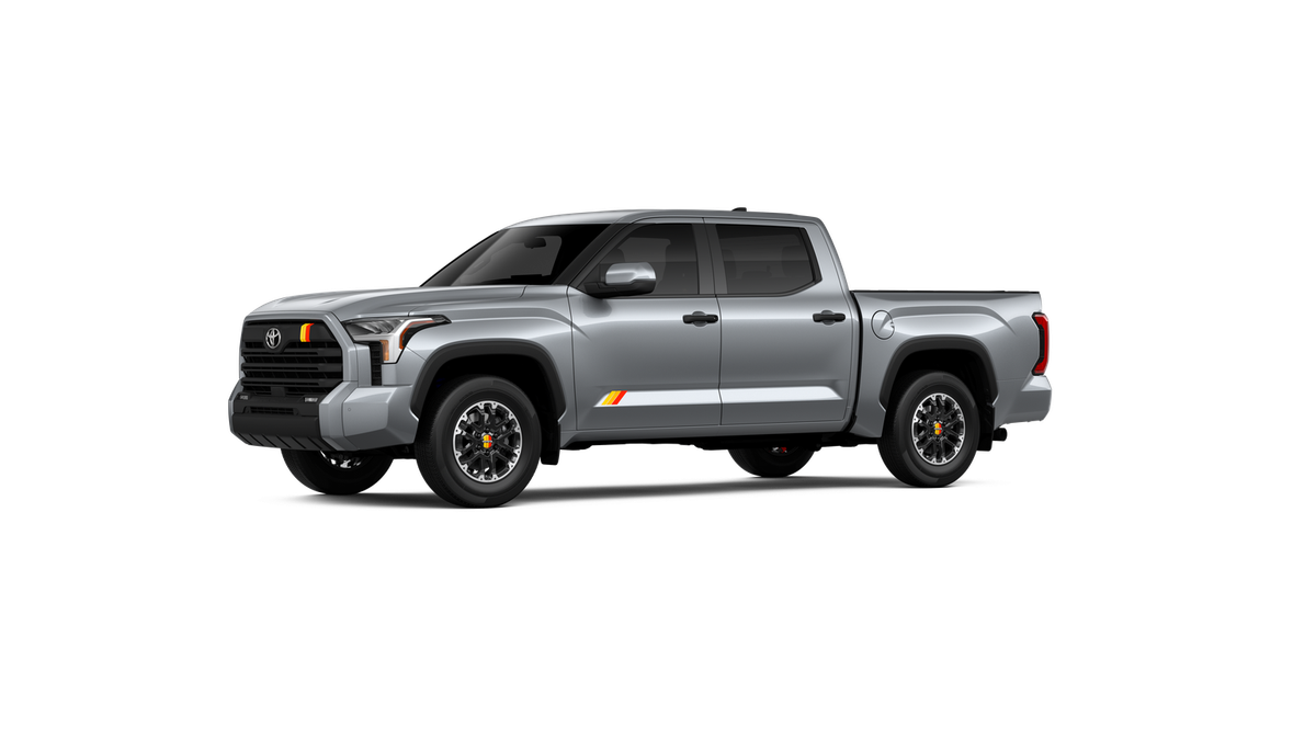 - Chrome "TUNDRA" and "SR5" door badges; black door handles, window molding, mirror caps, tailgate spoiler and overfenders
